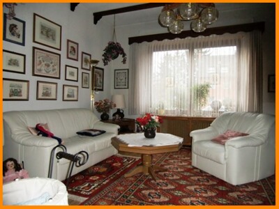 Die beiden Badezimmer sind von ca. 1975 und müssten erneuert werden. Das Gäste-WC wurde ca. 2005 erneuert. Das Haus ist komplett unterkellert.