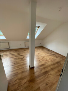 Die zweite großzügige Wohnung befindet sich im Dachgeschoss mit 80 m² Wohnfläche und wurde erst im Jahr 1996 nachträglich ausgebaut. Diese 3,5 Zimmer Wohnung ist bereits leergeräumt und kann nach einer Renovierung neu bezogen werden. Sie besteht aus einem Wohnzimmer, Schlafzimmer, großem Kinder-/Arbeitszimmer, Küche (Einbauküche im Kaufpreis mit enthalten) und einem Badezimmer. Auch zu dieser Wohnung gehört ein Kellerabteil im Untergeschoss. Hier haben Sie die Wahl von mehreren Nutzungs- und Verwendungsmöglichkeiten.