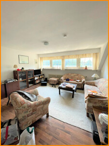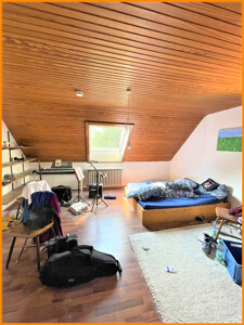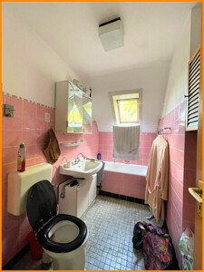 Die Immobilie wurde 1968 als Doppelhaushälfte auf einem ca. 383 m² großen Grundstück erbaut und weist einen einem dem Alter entsprechenden Allgemeinzustand auf. Die derzeit noch vermietet Dachgeschosswohnung wird in Kürze frei und bedarf einer Überarbeitung. Insofern ist hier auch eine Mietanpassung leicht möglich und nowendig.