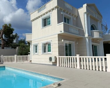 Natürlich gibt es einen großen Swimmingpool mit Terrassenumrandung und auch eine Garage. Diese teilmöblierte Villa
