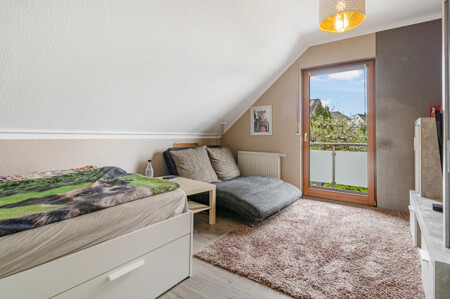 Im lichtdurchfluteten Dachgeschoss erwarten Sie drei schöne Schlafzimmer mit Balkon und Badezimmer. Diese Räume bieten nicht nur einen fantastischen Ausblick, sondern auch die ideale Umgebung für erholsame Nächte.