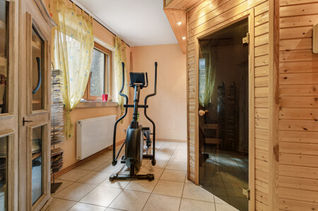 Die neue Küche mit hochwertigen Geräten lädt zum Kochen ein, während die eigene Sauna und ein separater Büroraum Ihren Bedürfnissen nach Entspannung und Effizienz gerecht werden.
