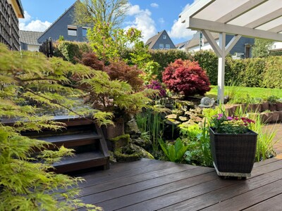 Willkommen in diesem wunderschönen Einfamilienhaus in Hückeswagen, das ein Höchstmaß an Komfort und Luxus bietet. Entdecken Sie die idyllische Atmosphäre eines gepflegten Gartens mit zauberhafter Teichanlage und einer großzügigen Terrasse für gesellige Abende im Freien.