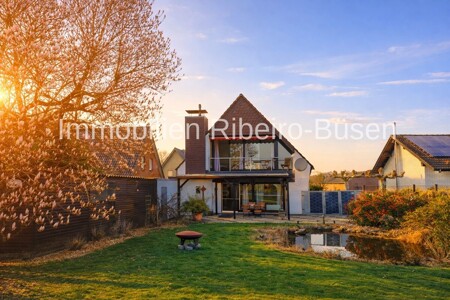 Dieses charmante Einfamilienhaus mit Einliegerwohnung überzeugt in den Wohnbereichen mit einer großzügigen Fensterfront zum Garten – sowohl im Erdgeschoss als auch im Dachgeschoss – und schafft so eine helle, freundliche Wohnatmosphäre mit einem wunderbaren Blick ins Grüne.