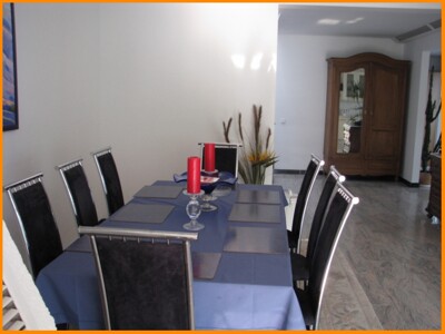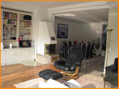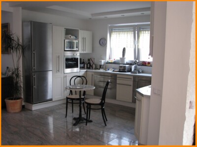 Hier wurde nachgedacht. Hochwertige Bodenbeläge (Granit und Parkett), Kamin, Klimaanlage, durchdachte Raumaufteilung, offene Küche, komplett nutzbarer Keller, Terrasse mit über 20 m², selbst die normalerweise schnöde Treppe ins 1. OG ist durch ihre leicht gewendelte Bauart ein Hingucker. Der große, pflegeleichte Süd-West-Garten lässt das Herz eines jeden Sonnenliebhabers höher schlagen. Die Heizungsanlage, inklusive der Warmwasserbereitung ist technisch auf höchstem Niveau. Abgerundet wird diese Top-Immobilie durch eine Doppelgarage und einen Carport. Es ist eine voll-, teil- oder unmöblierte Anmietung möglich.