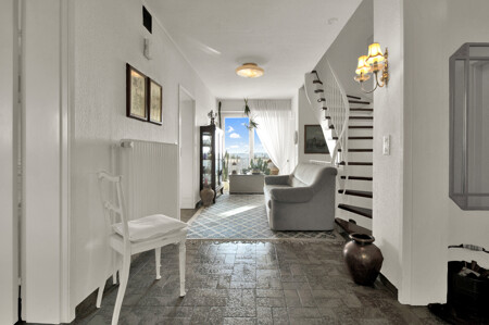Durch den lichtdurchflutete Eingangsbereich mit dem großzügig geschnittenem Flur erreichen Sie alle Räumlichkeiten des Erdgeschosses : ein Kinderzimmer, ein Schlafzimmer mit Badezimmer en Suite, das Gäste-WC, die Küche und das helle Wohn-/Esszimmer.