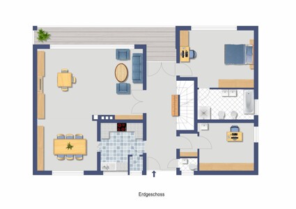 Die Wohnfläche von ca. 135 m² verteilt sich geschickt auf verschiedene Bereiche.