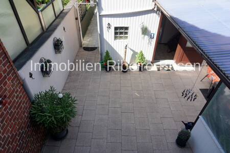 Die Wohnfläche des Haupthauses umfasst rund 115 m² auf zwei Ebenen. Weitere Räume mit einer Fläche von ca. 53 m² befinden sich im unmittelbar angrenzenden Nebengebäude. Der Zugang hierzu ist sowohl direkt vom Haupthaus möglich als auch über den Innenhof.