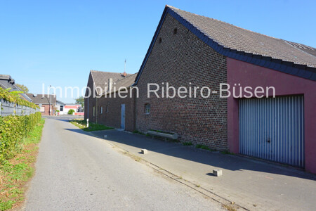 Hinter der großen Scheune schließen sich eine Garage sowie der weitläufige Garten an, die vielfältige Nutzungsmöglichkeiten eröffnen – ob für Hobbys, Tierhaltung oder einfach zum Genießen der Natur.