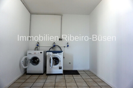 Im Erdgeschoss steht den drei Mietern ein Waschraum mit je eigenen Zählern zur Verfügung. Fahrräder, Koffer und überzählige Möbelstücke finden in einem weiteren Erdgeschossraum Platz, der als Kellerersatz dient.