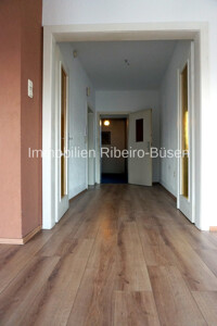 Das Wohnzimmer, die Diele und das Schlafzimmer sind mit Laminat ausgelegt. Die Küche und das Badezimmer sind hell und pflegeleicht gefliest.